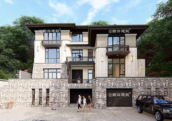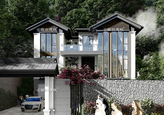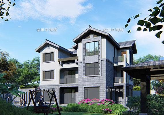 占地面積 120.0㎡ 土建造價 40.0萬 山腳下三層新中式小院