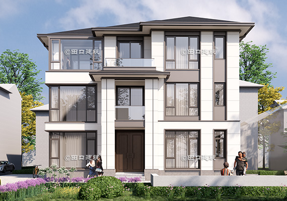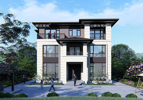 占地面積 142.4㎡ 土建造價 60.0萬 帶底商三層美式別墅